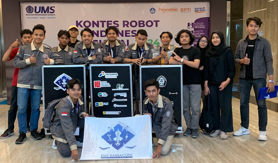 At the 2024 National KRI held at the Muhammadiyah University of Surakarta (UMS), the EWS Barracuda Team managed to reach the top 18 ranking in the Wheeled KRSBI category.