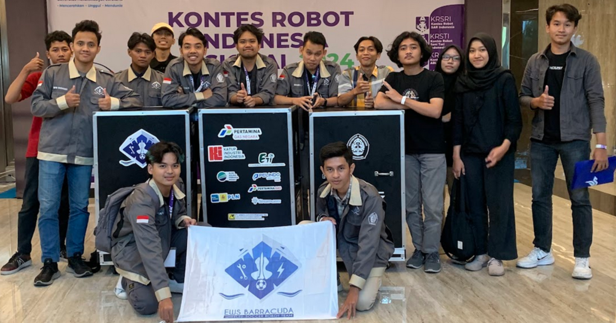 At the 2024 National KRI held at the Muhammadiyah University of Surakarta (UMS), the EWS Barracuda Team managed to reach the top 18 ranking in the Wheeled KRSBI category.